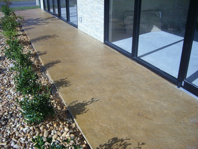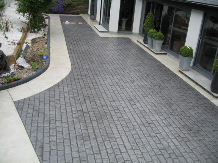Před ražením dekoru je povrch probarven na požadovaný odstín a opatřen patinou, díky které proběhne ražení bez problémů a výsledný povrch je téměř identický s přírodním originálem. Povrch je za 3-4 dny hotový. Zatížení pochozím provozem je možné po 48 hodinách, lehký pojezd za 6 dnů ode dne realizace.