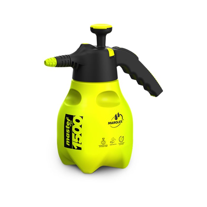 Ergonomický tvar postřikovače Marolex MASTER ERGO 1500 umožňuje pohodlné a bezpečné uchopení a zvyšuje komfort práce díky menšímu množství síly potřebné k odšroubování a utažení hlavy postřikovače.