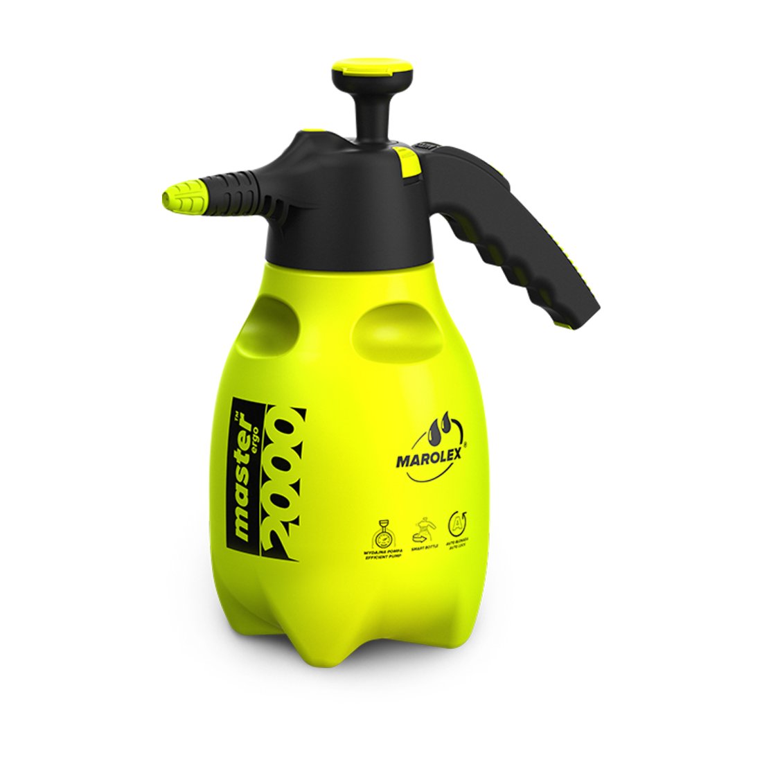 Ergonomický tvar postřikovače Marolex MASTER ERGO 2000 umožňuje pohodlné a bezpečné uchopení a zvyšuje komfort práce díky menšímu množství síly potřebné k odšroubování a utažení hlavy postřikovače.