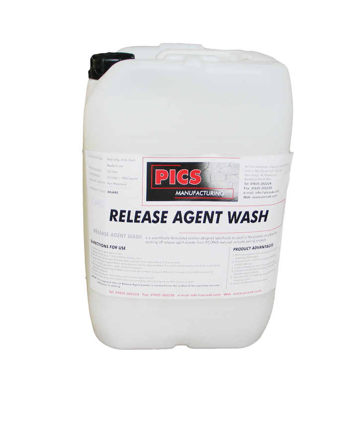 RELEASE AGENT Wash (RAW) je roztok speciální mýdlové tekutiny na bázi diethanolaminu. RAW je systémový výrobek, který se používá v rámci technologie dekorativního raženého betonu, pro neutralizaci a snadné omytí inertního odbedňovače RA. Výrobek je biologicky odbouratelný.